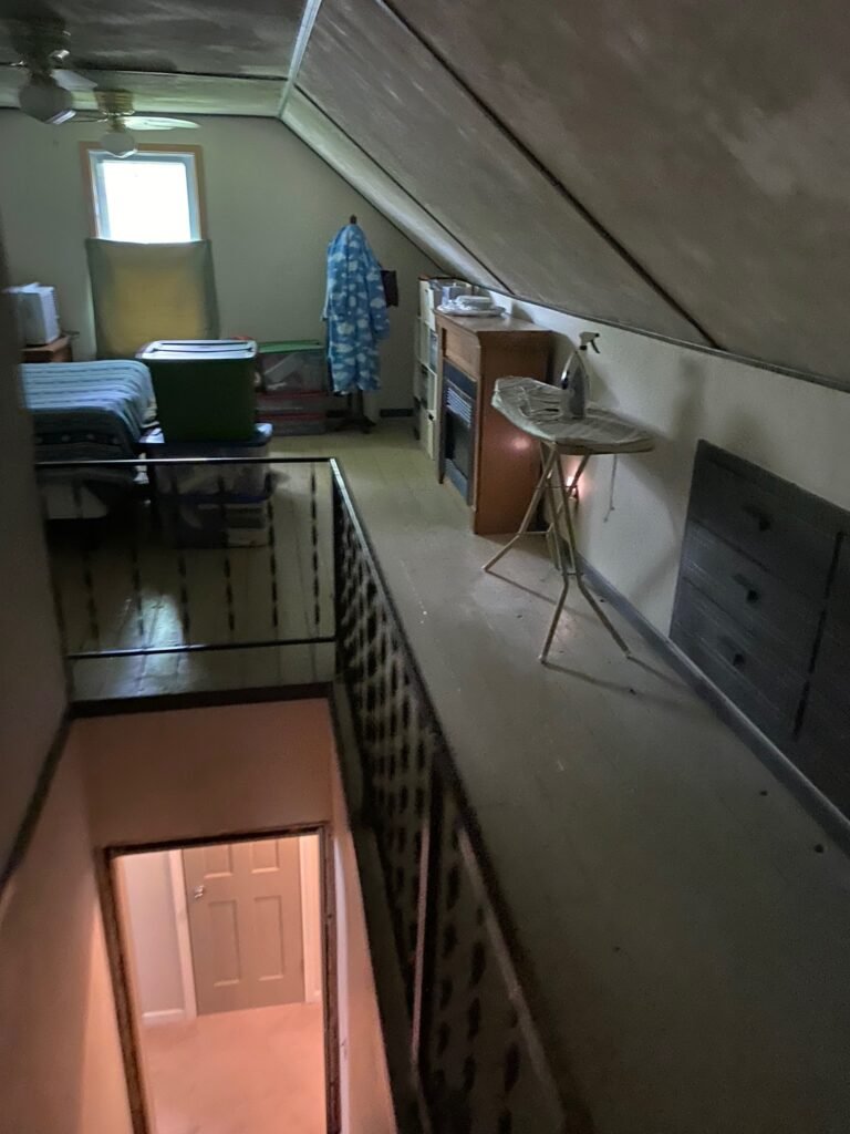 There was a set of narrow stairs that led to a loft, complete with mothballs and traces of mice. Everything needed to be fixed. The door on top of the stairs opened to an unfinished, possibly dangerous closet that we still refer to as the creepy room. And I still refuse to set foot in there. There was a decent sized walk in closet, and though it was as ugly as the rest of the house, I found it to be promising. We went to the basement and barely made it down using the crickety old stairs that were pieced together with common nails, all but hanging by a fringe from the wall. I still have PTSD and refused to go down there until recently, when Noah replaced them.