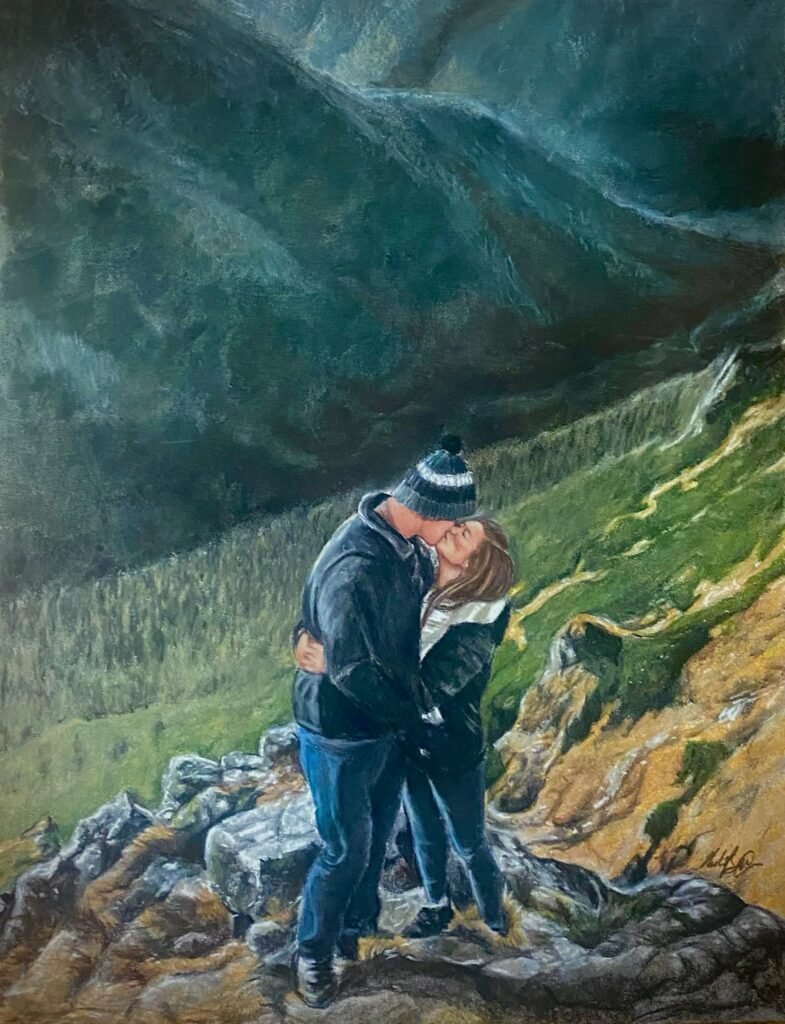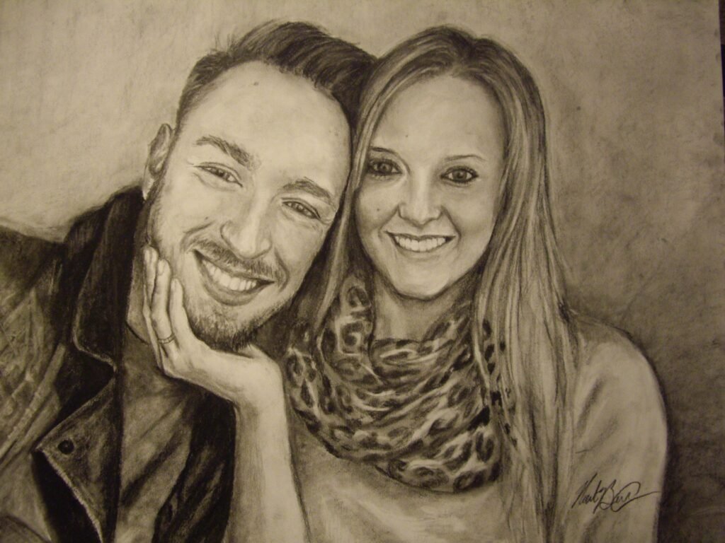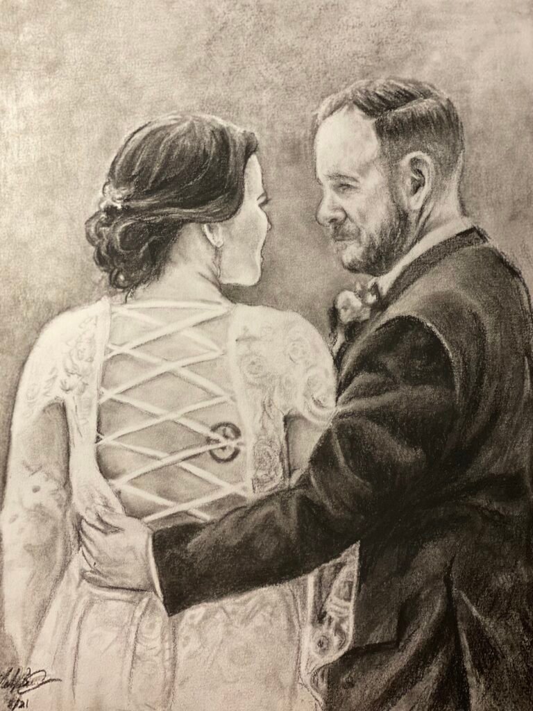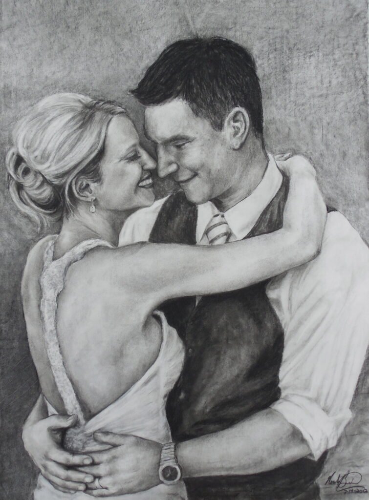 One of the most popular commissions is an original drawing of a Wedding picture or romantic getaway